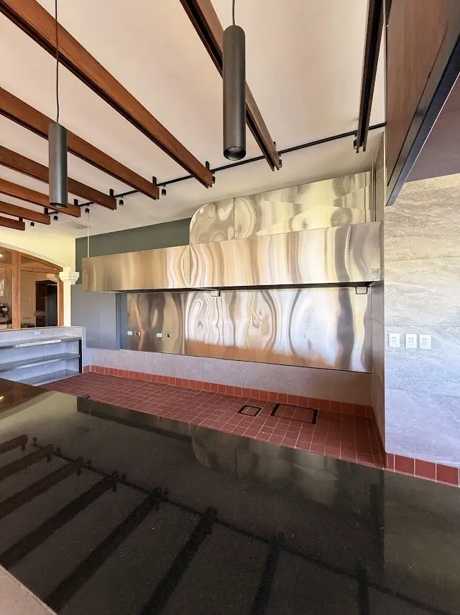 La solución fue abordar el proyecto desde dos frentes: funcionalidad y diseño. Se instaló una campana en acero inoxidable equipada con iluminación y filtros adecuados para asegurar una correcta extracción. Sin embargo, lo que realmente marcó la diferencia fue la decisión de fabricar todo el ducto en acero inoxidable. Aunque esto representó un costo mayor comparado con soluciones tradicionales, permitió mantener una estética limpia y acorde al entorno del club, evitando elementos que rompieran con el diseño del espacio.