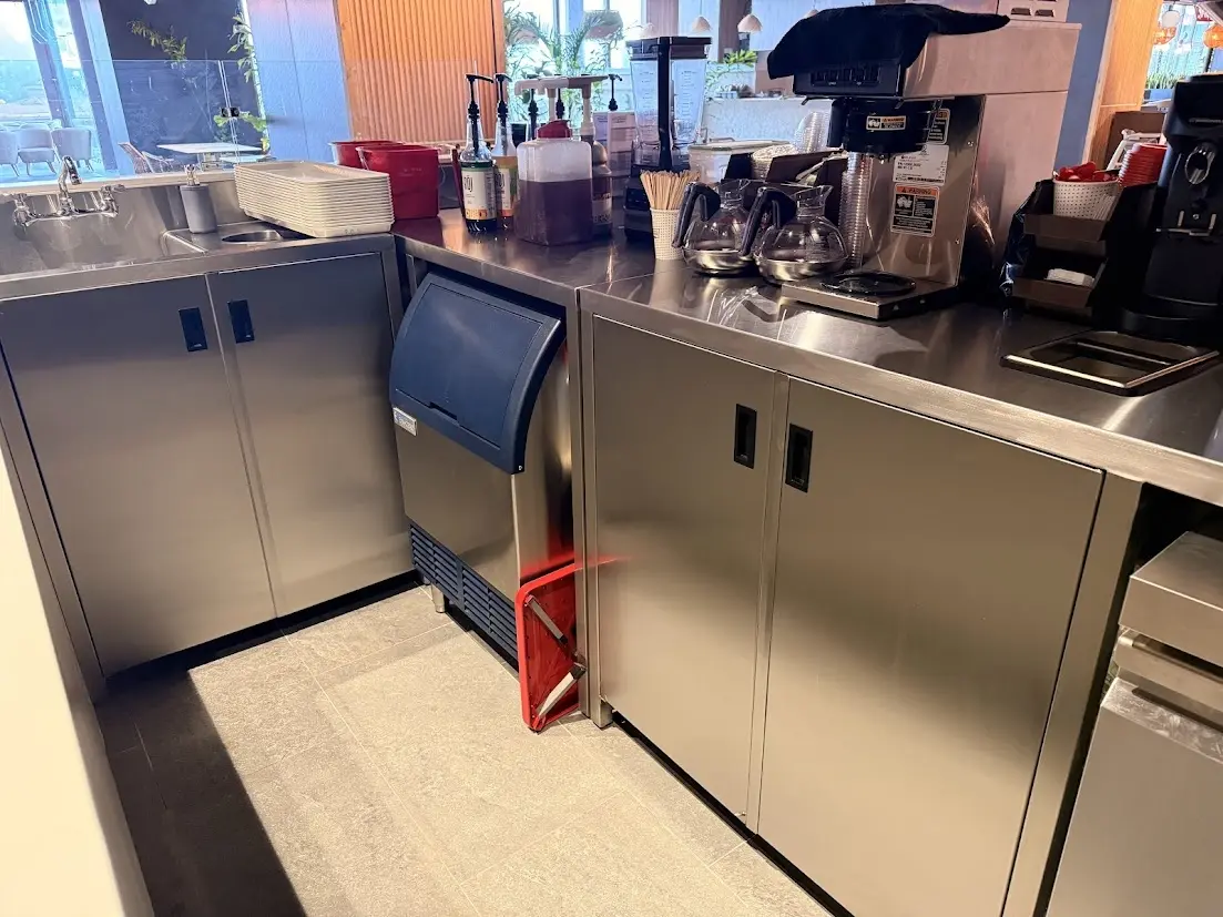 Además del mobiliario, se le vendió al cliente la mesa fría y la máquina de hielo, equipos que fueron seleccionados específicamente para encajar de manera exacta dentro de los muebles fabricados. Esta integración entre equipo y mobiliario ayudó a que el kiosco funcionara como un solo conjunto, optimizando el espacio y mejorando la operación diaria.