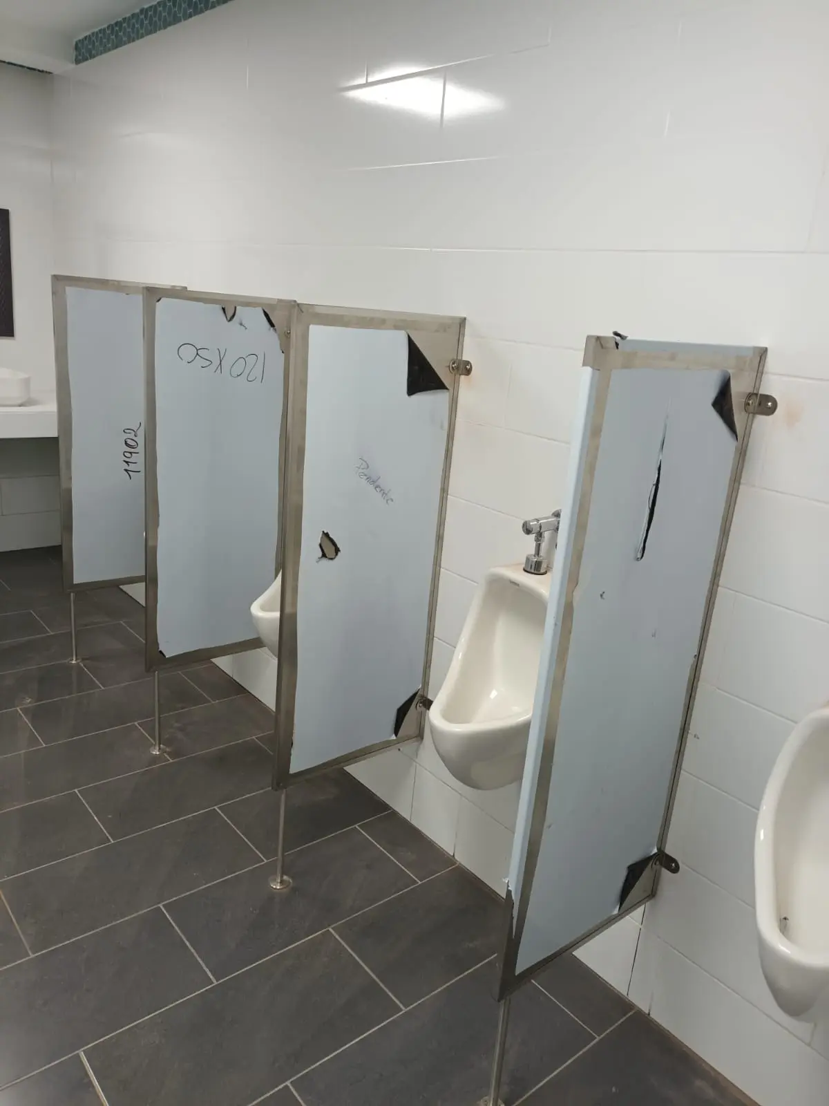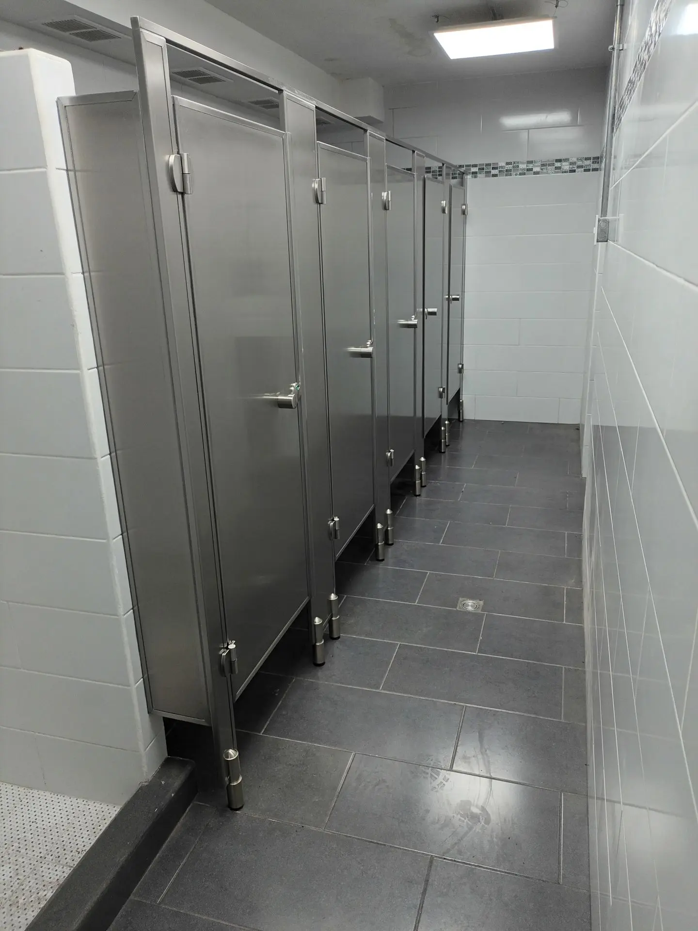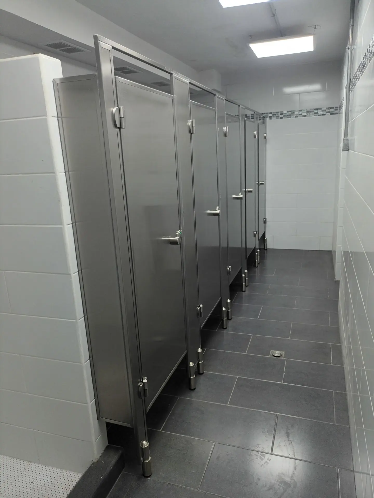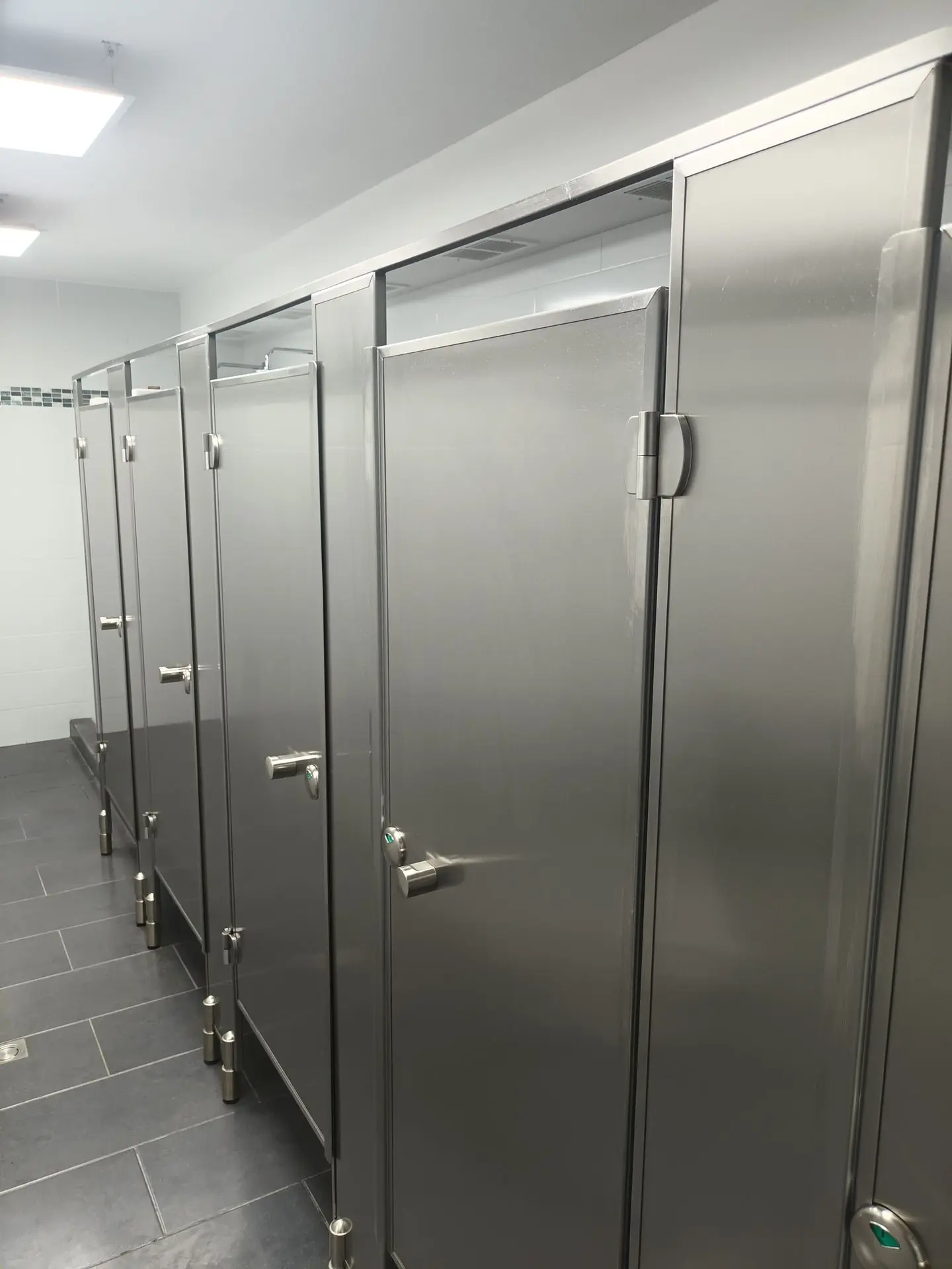 Una vez habilitado el espacio, nuestro equipo logró completar el montaje de ambas baterías de baño en un tiempo total de cuatro días. El trabajo incluyó nivelación, anclajes reforzados, ajustes in situ y terminaciones limpias, priorizando la estética y la durabilidad. La instalación en acero inoxidable no solo aporta una apariencia moderna y profesional, sino que también facilita la limpieza y desinfección, resiste humedad y productos químicos, y mantiene su apariencia por años sin deteriorarse.