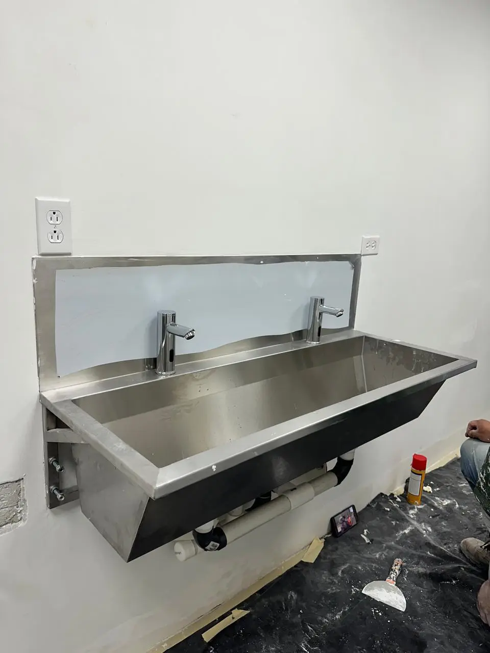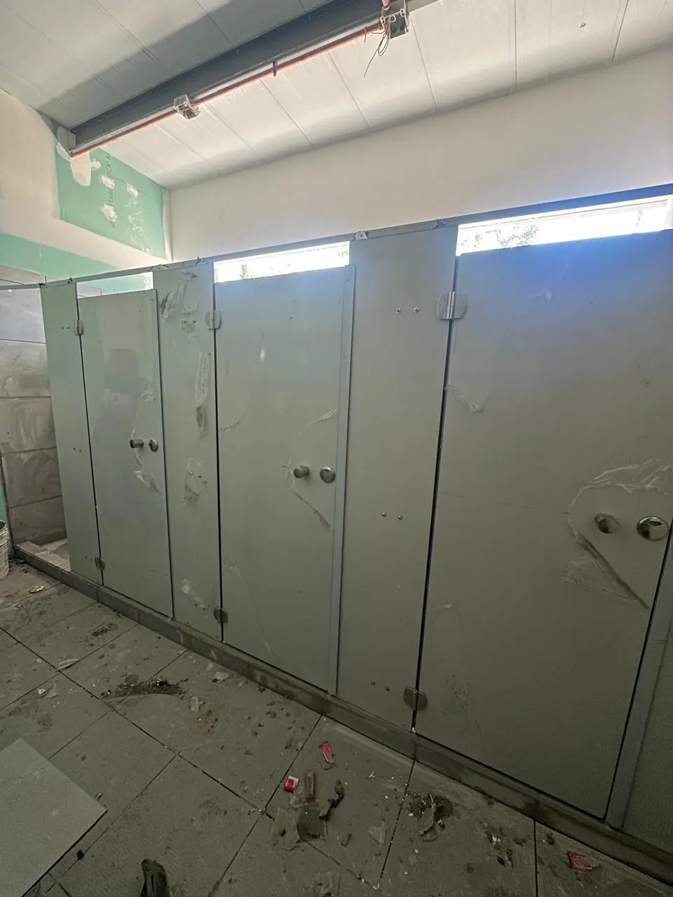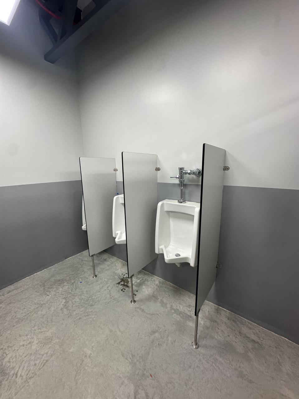 El proyecto incluyó el diseño y montaje de mamparas para inodoros, mingitorios y duchas. También se instalaron lavamanos para 1, 2 y hasta 5 personas, cuidando el orden, la separación y la comodidad de uso.